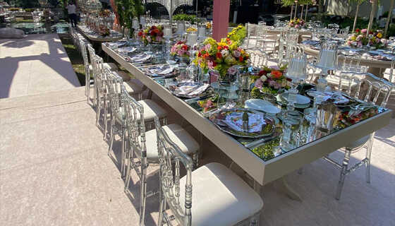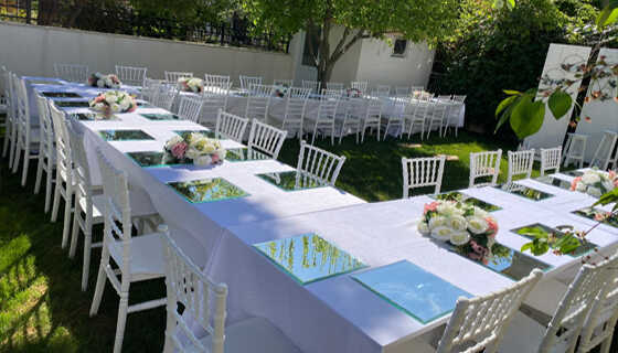 Bugüne kadar pek çok düğün organizasyonunu başarı ile üstlenmiş olan ‘Masa Sandalye Kiralama’ olarak özel davetlerin yanı sıra her türlü toplantı organizasyonları, kurumsal organizasyonlar, açılışlar, stand projelendirme ve yapımı,dekor ve tasarım hizmetleri vermekteyiz.